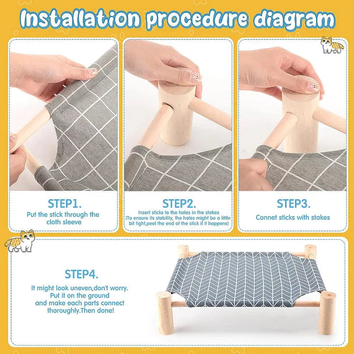Easy to Assemble: you can install the dog cat bed elevated without tools in a few minutes to create a comfortable bed for your cats or dogs, and you can also reinforce the gap with a rubber hammer (not included), after disassembly, our cat bed is very small, easy to carry and store, you can also take it for outdoor and indoor use and can be reused for a long time