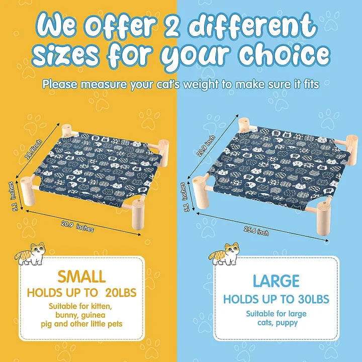 Reliable Material: the supporting wooden pole of elevated cat bed is made of natural wood, which retains the characteristics of wood itself, firm and sturdy, and has a stable structure, making cats feel security, and the mat is made of breathable and soft canvas fabric, will not irritate pets' skin, easy to disassemble and clean, which can keep your pets comfortable and clean