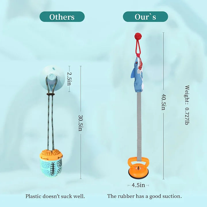 Introducing our Suction Cup Tug of War Dog Toy dog rope, the perfect toy for your active and tough dogs! Designed for puppies, medium-sized dogs, and even large breeds, this toy is ideal for teething and aggressive chewers. Featuring a strong suction cup, this interactive toy can be easily attached to any smooth surface, providing hours of entertainment and mental stimulation for your furry friend. The tough rope is built to withstand even the strongest tugs, ensuring long-lasting durability. Not only does this toy help satisfy your dog's chewing instincts, but it also helps alleviate separation anxiety and boredom. The engaging tug of war game promotes bonding between you and your pet, making playtime even more enjoyable. With its innovative design, this toy also doubles as a dog nail file, helping to keep your dog's nails in check while they play. The hard texture of the toy gently files down your dog's nails, saving you time and effort in grooming. Invest in our Suction Cup Tug of War Dog Toy and provide your furry companion with a fun and engaging way to relieve stress, promote dental health, and keep them entertained for hours. Order now and give your dog the tough and interactive toy they deserve!