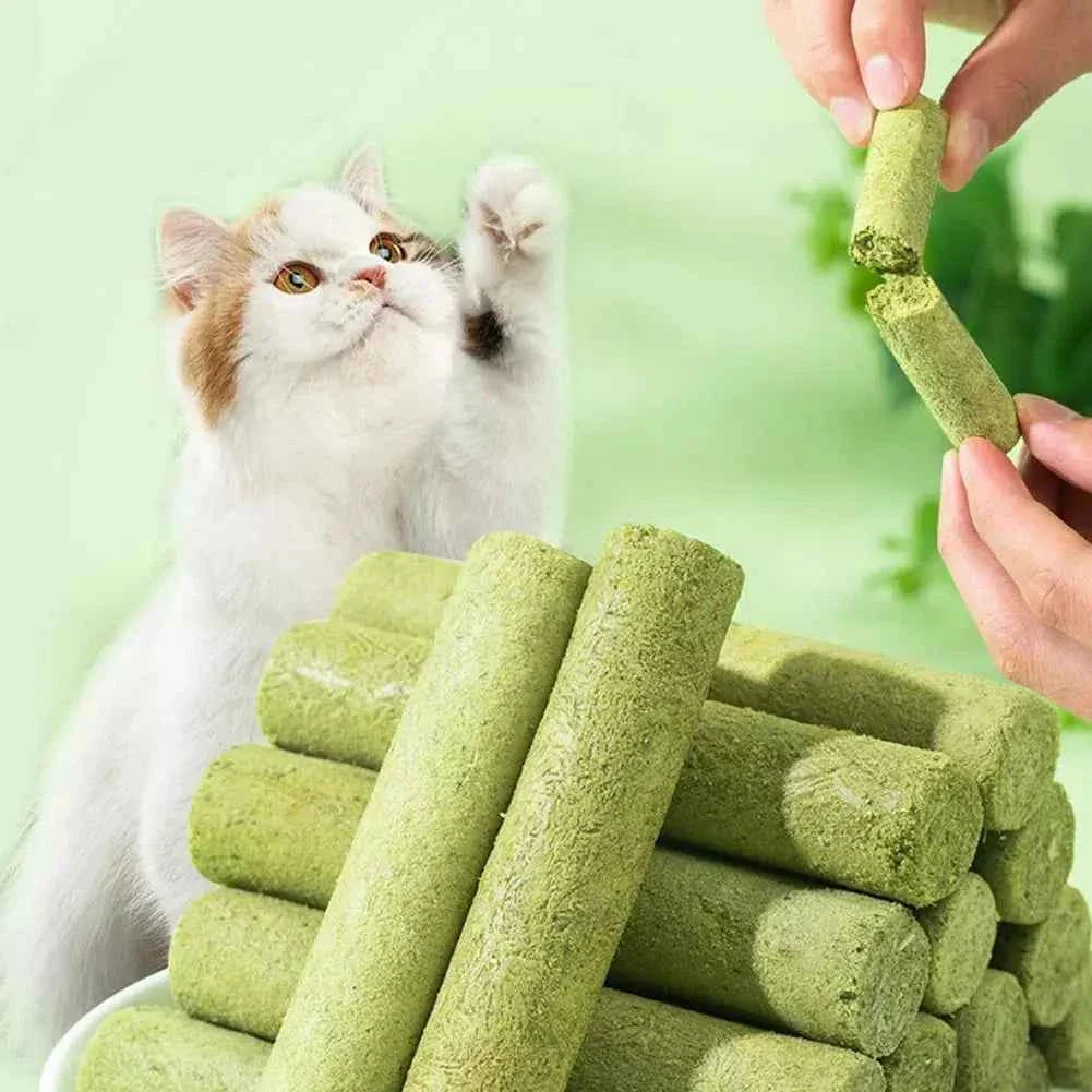 Cats love their cat grass, but sometimes it may be a hassle keeping it on hand as well as having separate treats. With our Cat Grass Teething Stick though, you eliminate all of that tiring stuff and have it all in one fell swoop!