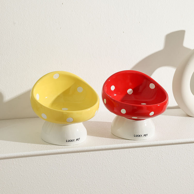Enhance your cat's mealtime experience with our Mushroom Cat bowl. The large diameter and high-legged design prevent tipping and eliminate messy spills. Made from quality ceramic, this oblique bowl also helps prevent chin acne. Perfect for any cat owner looking for a functional and stylish feeding solution.