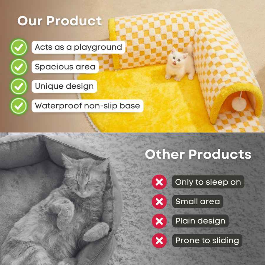This innovative bed doubles as a playful tunnel and a comfy resting spot. It's the perfect solution for your cat's adventurous spirit and nap times, offering endless entertainment and a cozy retreat.
