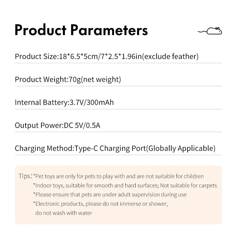 Engage your kitten in hours of fun with our Rechargeable Moving Mouse Cat Toy! This interactive toy features realistic mouse movements and sounds to stimulate your furry friend's hunting instincts. With a rechargeable battery, you'll never have to worry about replacing batteries. Keep your cat entertained while also giving them exercise and mental stimulation.