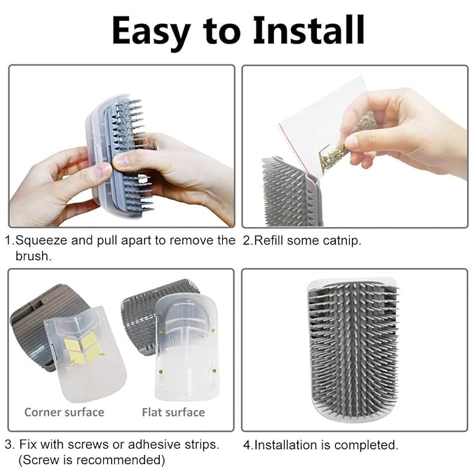 This self grooming corner scratching brush is the perfect tool for keeping your furry friends well-groomed and happy. The built-in catnip corner provides a stimulating massage while the grooming brush helps maintain a healthy coat for both long and short cats and dogs. Improve their well-being with this essential accessory.